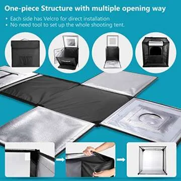 Designed for ease of use, this lightbox can be set up and broken down in mere minutes, thanks to its innovative Velcro system. Measuring a convenient 20 inches, it provides ample space for various objects and offers multiple openings for easy placement and shooting angles. Compatible with iPhones, iPads, and DSLRs, it caters to your preferred device, ensuring versatility and adaptability in your photography.