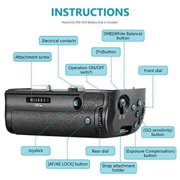 Show moreIntroducing the exquisite Neewer Battery Grip, designed specifically for your GH5 camera, offering photographers an unparalleled shooting experience. This power-packed accessory doubles your battery life, allowing you to capture more stunning moments without interruptions. Made with high-quality materials, this grip feels solid in your hands, elevating your photography game to a professional level. The Neewer grip is lightweight and designed to ensure your camera feels perfectly balanced, even during those extended shooting sessions.