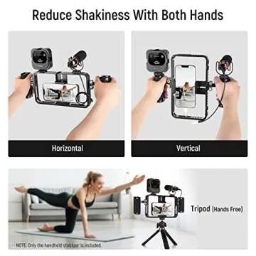 NEEWER Phone Stabilizer Video Rig Kit, Aluminum Handheld Phone Cage with Silicone Handles&Adjustable Phone Clip Compatible with iPhone 14 Plus 14 Pro Max 13 Pro Max Samsung for Vlogging Live Streaming