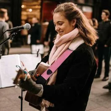 Nefelibata Guitar Strap,Double Full-Grain Leather Ends,Vintage Velvet Strap/FREE BONUS-4 Picks+Strap Locks+Strap Button,Gift For Bass,Electric&Acoustic Guitars(Vintage Cherry Pink)
