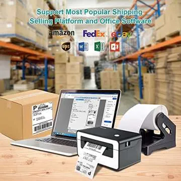 Show more Introducing the ultimate solution for all your printing needs! This high-speed thermal label printer is designed to revolutionize the way you operate your home business or shipping tasks. With superior compatibility across various operating systems including both Windows and Mac, and an ability to seamlessly integrate with major shipping platforms like FedEx, USPS, and Amazon, this printer is not just a purchase; it's an upgrade to your efficiency.