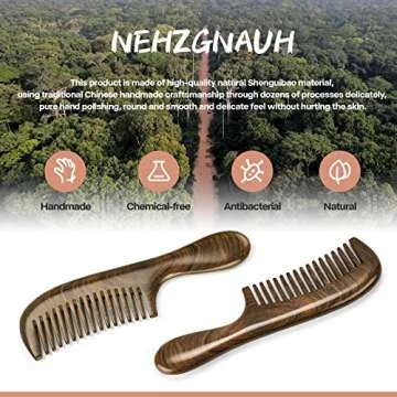 Nehzgnauh Wide Tooth Comb for Men and Women,Wooden Massage Comb Anti Static Electricity and Frizz,Detangling Hair Comb for Curly Straight Long Hard Hair (Large, Black-brown)