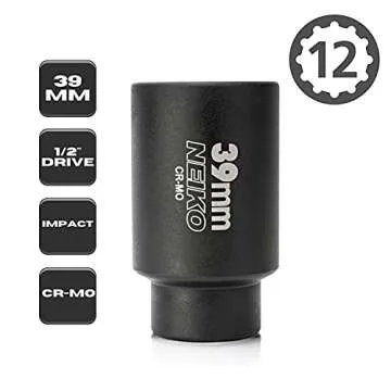 NEIKO 02529A 39mm Socket | 1/2” Drive Deep Impact Socket | Spindle & Axle Nut Socket | 12 Point |Chrome Molybdenum Cr-Mo |Deep Well Hub | Triple Square | Axle Shaft Nut Remover