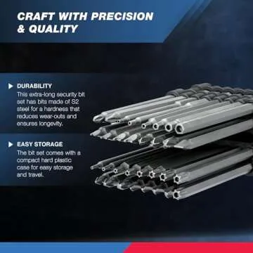 Introducing the NEIKO 10224A 1/4" Extra Long Security Bit Set - the ultimate 32-piece screwdriver bit kit designed for those who demand precision, durability, and versatility in their toolbox. Crafted from high-quality S2 alloy steel, these bits are engineered to withstand the rigors of daily use while significantly reducing wear and tear. Each unique bit in this set has been meticulously designed to tackle even the most specialized tasks, including loosening tamperproof screws that regular...