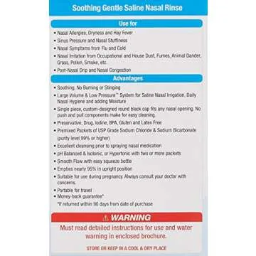Show moreIntroducing the NeilMed Pediatric Bottle Kit for Saline Nasal Rinse (304), an expertly crafted solution designed to provide therapeutic relief for your child's nasal passages. This comprehensive 8-piece set features a gentle, pH-balanced, isotonic saline solution that effectively cleanses and moisturizes, ensuring a soothing experience with no burning or stinging sensation. With the clever design of a custom cap, it fits comfortably in any nasal opening, making nasal irrigation easy and hassle-free for children of all ages. This remarkable kit is also preservative, iodine, and latex-free, prioritizing your child's safety and comfort above all else. Plus, with a 90-day money-back guarantee, you can trust its efficacy or receive a full refund.