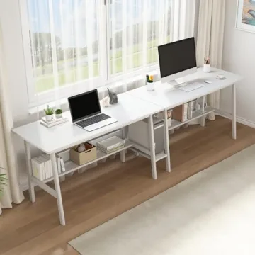 Show moreThe NELYE 2-Person Writing Desk with Bookshelf is more than just a workstation; it’s a stylish addition to your home that perfectly balances functionality and aesthetics. Designed with a minimalistic approach, this desk features a spacious overall size of 110.2" W x 23.6" D x 29.5" H, making it ideal for two users. Crafted from thickened MDF tabletop and solid wood legs, it promises both durability and elegance in any office or study environment. The waterproof surface ensures that your workspace remains pristine even during intense workflows, while the sturdy legs give you the peace of mind needed for long hours of productivity. Ideal for those seeking to create a modern yet cozy atmosphere, it's a versatile piece that complements various decors.