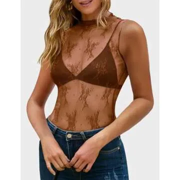 NENONA Women's 2024 Mesh Tops Summer Sleeveless Lace Embroidery Layering Tank Top,Brown,S