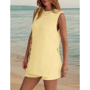 NENONA Womens 2025 Knitted Lounge Sets Sleeveless Tunic Top Matching Shorts Beach Vacation Set, Yellow, XL