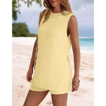 NENONA Womens 2025 Knitted Lounge Sets Sleeveless Tunic Top Matching Shorts Beach Vacation Set,Yellow,S