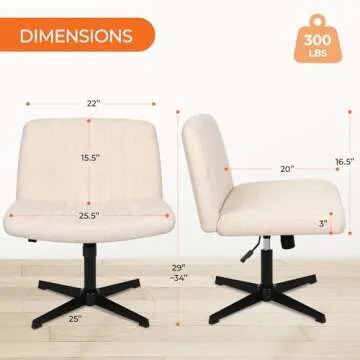 NEO CHAIR Criss Cross Chair No Wheels Armless Cross Legged Office Desk Wide Comfy Vanity Makeup Chair Adjustable Computer Task for Home Office Fabric (Beige)
