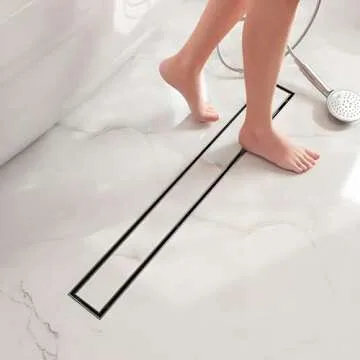Show more Experience ultimate luxury in your shower space with the Neodrain 32 in Matte Black Linear Shower Drain. Measuring an impressive 32 inches in length and designed with a sleek 2.75-inch width, this premium shower drain combines functionality and modern aesthetics seamlessly. Crafted from durable AISI 304 stainless steel, the matte black surface is not only elegant but also resistant to corrosion and rust, ensuring longevity and a stylish look in your bathroom. With a high flow capability of 33 liters per minute, this drain effectively channels water away, allowing for a comfortable and efficient shower experience.