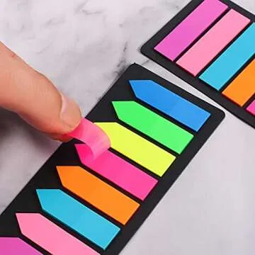 Show more Discover the perfect companion for all your organizational needs with our vibrant and versatile set of 1280 fluorescent color Sticky Tabs. This set brings together 8 primary neon colors in 2 different designs, ensuring that you have enough marking tools to brighten up your study materials, books, and notes. With such an ample quantity, you can be confident that your marking needs will be met for a long time.