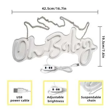 Neon Sign Oh Baby Warm White Neon Sign for Wall Decor Neon Lights Sign Gift Oh Baby Word LED Neon for Nursery Bedroom Game Room Club Bar Wedding Party Decoration