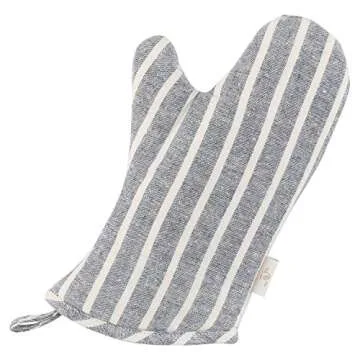 NEOVIVA Denim Quilted Heat Resistant Oven Mitt for Children, Set of 2, Chalk Striped Wild Dove