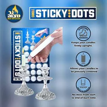 Transform your candle experience with our innovative Ner Mitzvah Candle Sticky Dots. These exceptional wax candle adapters are designed for ultimate stability, ensuring that your candles remain upright and secure in any holder. No more worrying about tipping candles ruining your beautiful decor! Perfect for family dinners or festive occasions, these sticky dots address the common problem of unstable candles with elegance and ease.