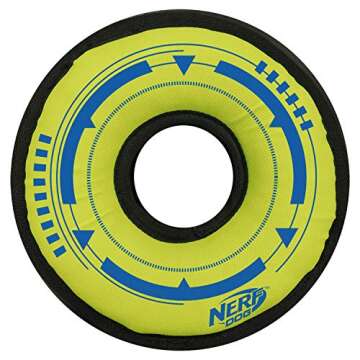 Nerf Dog Trackshot Cyclone Ring Dog Toy, Lightweight, Durable and Water Resistant, 9 Inches, for Medium/Large Breeds, Single Unit, Blue/Green