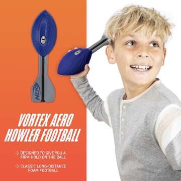 Nerf Vortex Aero Howler Foam Ball – Classic Long-Distance Football - Flight-Optimizing Tail - Hand Grip – Indoor and Outdoor Fun (Blue)
