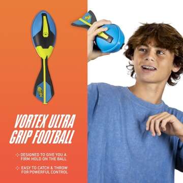 Show more The NERF Vortex Ultra Grip Foam Football is the ultimate outdoor companion for those seeking excitement and adventure! This innovative football features a bold design with striking blue and neon yellow accents that not only catch the eye but also enhance performance. Built for maximum distance, the Vortex is engineered with aerial flight technology that enables it to soar higher and further than typical footballs. One of its standout features is the built-in air holes, which make a distinctive whistling sound as the ball flies through the air, adding an exhilarating auditory experience to your games. Imagine the thrill of throwing the ball and hearing it whistle past your friends!