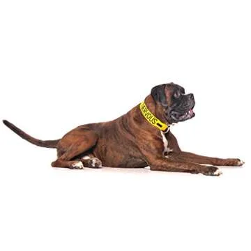 Show moreIntroducing the Nervous (Give Me Space) Yellow Colour Coded Dog Collar—an essential accessory designed for dogs that need a little extra room. This adjustable collar fits neck sizes ranging from 38 to 64 cm (15-25 inches) and is 4 cm wide (1.5 inches), ensuring a comfortable fit for both medium and large breeds. Made from high-quality, durable nylon, it effectively combines functionality with a vibrant design, ensuring your dog stands out while conveying a critical message to those around them.