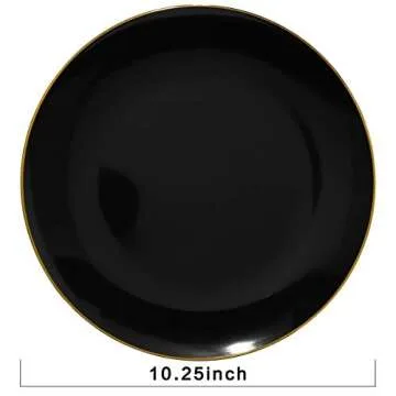 Nervure 100PCS Black and Gold Plastic Plates - 10.25 inch Black Disposable Plates - Gold Rim Dinner Plates - Black Dinner Plates Ideal for Wedding & Party & New Year