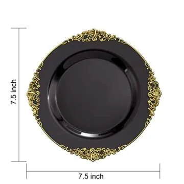 After your event, you can easily hand wash and reuse these plates or dispose of them for added convenience. With their durability and stylish appearance, they are a fantastic investment for anyone who loves to host. Make your next celebration memorable with the elegance and simplicity that these black gold plates bring.