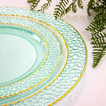The exquisite hammered gold design adds a touch of sophistication to your table setting while being completely disposable โ no need to worry about cleanup! Ideal for a variety of occasions, this set will impress your guests at birthday parties, wedding receptions, and festive gatherings like St. Patrickโs Day and Christmas. Create an ambient atmosphere while ensuring your event looks both classy and enjoyable.