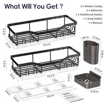 NESOMI Shower Caddy Adhesive Shower Organizer Rustproof Stainless Steel Bathroom Shelves, Large Capacity No-Drill Rack Storage Accessories with Soap Dish Toothbrush Holder & 16 Hooks Home Decor Black