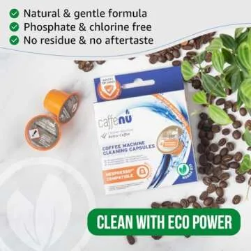 Show more Transform your coffee experience with Caffenu Nespresso Cleaning Pods, the world's first capsules specifically designed for cleaning your Nespresso machine. These innovative capsules not only clean but also enhance the flavor and aroma of your coffee by eliminating unwanted debris and build-up in the brewing chamber. Regular use of these pods is crucial for maintaining the hygiene of your coffee machine, extending its lifespan, and delivering a fresh pour every time.