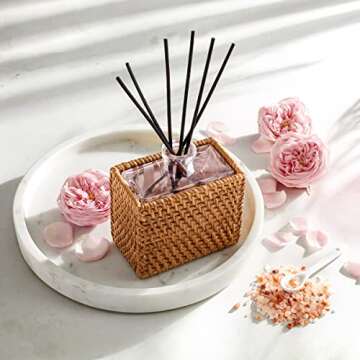 The unique decorative rattan sleeve not only enhances aesthetics but is also practical, ensuring easy compatibility with any NEST New York reed diffuser bottle. Made with care and precision, each sleeve varies slightly, adding to its charm and individuality. You can truly appreciate the NEST New York difference with this carefully crafted diffuser, made in the USA with ethically sourced materials and no harmful additives like formaldehyde, parabens, or phthalates.