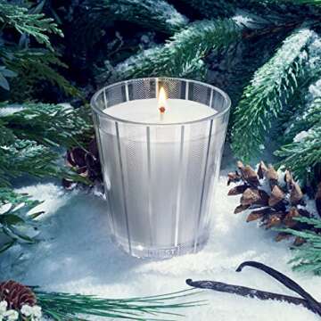 The fragrance captures a fresh and festive blend of crisp blue cypress, juniper berry, and subtle hints of smoked vanilla bean, reminiscent of a serene winter mountain retreat. Light this candle and transform your space into an aromatic escape, perfect for cozy evenings or festive gatherings.