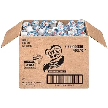 Show moreThe Nestle Coffee mate French Vanilla flavored coffee creamers are the ultimate companions for coffee lovers who crave a delectable twist to their daily brew. This delightful product adds a rich and creamy vanilla flavor that enhances your coffee experience, making every sip a moment to savor. Whether you're at home, in the office, or on-the-go, these coffee creamers are designed to blend seamlessly into both hot and cold beverages, elevating your drink without the fuss of measuring. With no need for refrigeration, these shelf-stable creamers retain their delightful taste at room temperature for up to 9 months, providing you with convenience and peace of mind.