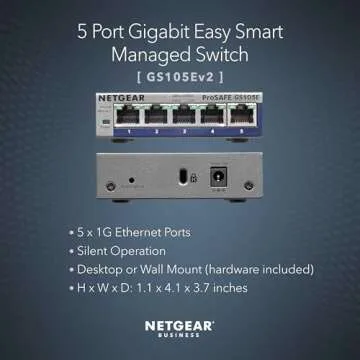 Show more The NETGEAR 5-Port Gigabit Ethernet Switch is the perfect solution for anyone looking to enhance their home or small office network. Designed with five gigabit Ethernet ports, this switch provides lightning-fast connectivity, ensuring smooth gaming, streaming, and browsing without interruptions. The Easy Smart Managed software offers a user-friendly interface for configuring, securing, and monitoring your network like never before.