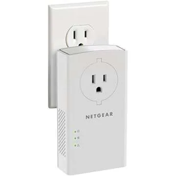 NETGEAR Powerline adapter Kit, 2000 Mbps Wall-plug, 2 Gigabit Ethernet Ports with Passthrough + Extra Outlet (PLP2000-100PAS), White