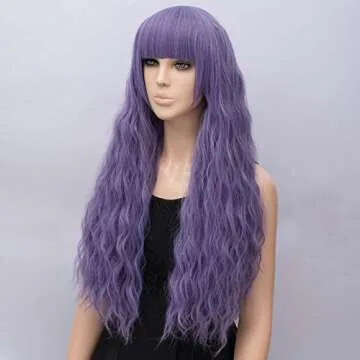 Netgo Women's Lavender Purple Wig Long Fluffy Curly Wavy Hair Wigs for Girl Synthetic Party Wigs