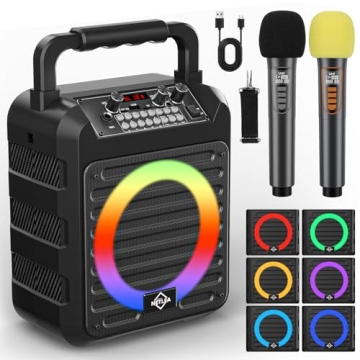 Show moreIntroducing the NetLea Rechargeable Wireless Karaoke Machine, a revolutionary product designed to bring joy and entertainment to any gathering. Equipped with two rechargeable wireless microphones, this karaoke machine offers unmatched convenience with a strong anti-interference ability. With a remarkable working range of up to 35 feet and a 360 ° pickup, you can sing and dance freely without any interruptions. The compact and lightweight design, weighing only 2.2 kg, makes this portable speaker easy to carry to any location, whether it be a beach party, an outdoor event, or an intimate karaoke night at home.