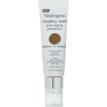 Show moreIntroducing the Neutrogena Healthy Skin Anti-Aging Perfector - your ultimate solution for merging skincare with makeup established by Neutrogena's dedication to innovation and quality. This lightweight tinted moisturizer is designed to offer more than just hydration; packed into a convenient 1-fluid ounce tube, it boasts an SPF 20 formula that shields your skin from harmful UVA/UVB rays. With the power of clinically proven retinol and a rich blend of antioxidants and vitamins, this soothing moisturizer diligently minimizes the appearance of fine lines and wrinkles, giving your skin the tender care it deserves.