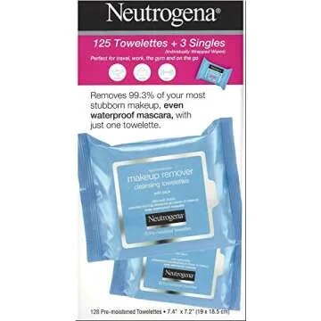 Neutrogena Makeup Remover Cleansing Towelettes, Daily Face Wipes to Remove Dirt, Oil, Makeup & Waterproof Mascara, 25 ct (5 pack + 3 Bonus Pouches)
