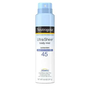 Show more Discover the ultimate sun protection with Neutrogena Ultra Sheer Body Mist Sunscreen Spray! This incredible product offers three 5 oz cans of broad-spectrum SPF 45 sunscreen spray that is both lightweight and non-greasy. Perfectly formulated with Helioplex technology, this sunscreen delivers exceptional UVA and UVB protection while leaving your skin feeling fresh and moisture-rich. Designed for those who love outdoor activities such as days at the beach, pool lounging, or vacations in sunny destinations, Neutrogena makes sun care effortless and enjoyable.