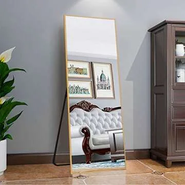 NeuType Full Length Mirror Dressing Mirror with Standing Holder 65"x22" Large Rectangle Bedroom Floor Mirror Wall-Mounted Mirror Hanging Leaning Against Wall (Gold)