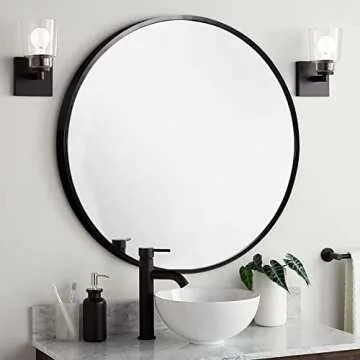 NeuType Round Mirror Circle Mirror 32 Inch Aluminum Alloy Frame Wall Mirror Large Vanity Hanging Decorative Mirrors for Entryway, Bathroom, Bedroom, Living Room, Black