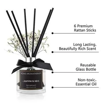 NEVAEHEART Diffuser Set,Jasmine & Mint Diffuser Gifts for Women,3.4oz(100ml) Diffuser with Sticks, Home Fragrance Diffuser for Living Room, Office & Bathroom Shelf