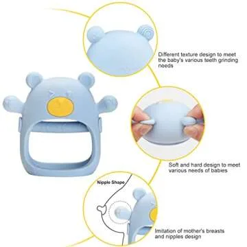 Never Drop Baby Teething Toy for 0-6 Month Infants, Dust-Proof Baby Chew Toys & Soothing Pacifier 2-in-1, Silicone Hand Teether for Babies 6-12 Months Sucking Needs, BPA Free