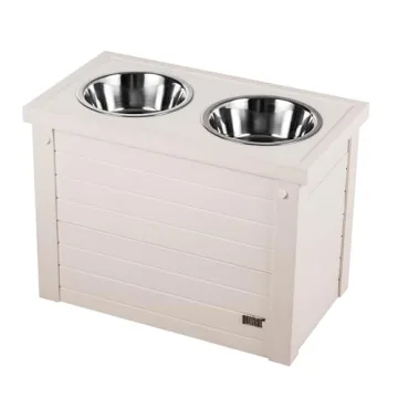 Show moreIntroducing the New Age Pet® ECOFLEX® Elevated Dog Feeder, designed with your furry companion in mind. This elevated dog feeder stands at a comfortable 15 inches tall, making it perfect for larger breeds or for dogs who prefer a more convenient dining height. Crafted from ecoFLEX, a unique, non-toxic recycled plastic-wood polymer composite, this feeder is built to last. It won't warp, crack, or split, ensuring that it maintains its stylish appearance and functionality through years of use. The clever design features a sliding lid that opens easily for food storage, keeping your dog's meals fresh and secure. With the inclusion of two 32oz. stainless steel bowls, this elevated feeding station offers both durability and ease of cleaning, as they can simply be wiped down with a damp cloth.