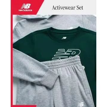 Show more Introducing the OFFICIALLY LICENSED NEW BALANCE 3 Piece Boys' Activewear Set, the ultimate choice for active youngsters driven by their passions. This thoughtfully crafted set includes a cozy hoodie, comfortable jogger pants, and a stylish t-shirt, making it perfect for boys who love to play both indoors and outdoors. Made from a high-performance fabric, this outfit offers warmth and comfort during those cooler days while remaining breathable and lightweight enough for intense activities. Your child will experience all-day comfort and flexibility, essential for their adventurous lifestyle.