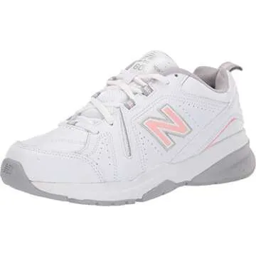 New Balance Women's 608 V5 Casual Comfort Cross Trainer, White/Pink, 8.5 Wide