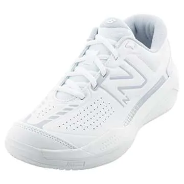 New Balance Women's 696 V5 Hard Court Tennis Shoe, White/Navy, 8