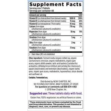 Show moreUnlock the secret to enhanced bone health with the New Chapter Bone Strength Take Care Value Pack. This premium supplement is clinically formulated with plant-sourced calcium, fortified with Vitamin K2 to ensure calcium is directed right to your bones—where you need it most. Fermented with Vitamin D3, this formulation supports maximum absorption, while also providing Magnesium and over 70 whole-food trace minerals. Perfectly tailored for those who recognize the importance of bone health, the pack includes a generous 144 slim tablets, designed to be easy to swallow for your convenience.