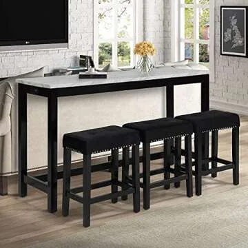 New Classic Furniture Celeste Faux Marble Theater Table with 3 Bar Stool Set, Black Base