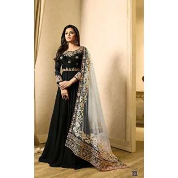 Show moreStep into a world of elegance with the New Designer Indian/Pakistani Ethnic Wear Georgette Anarkali Gown in a stunning Black hue. This exquisite gown is made from high-quality Faux Georgette, ensuring a lightweight and flowy fabric that drapes beautifully on your body. Designed to be a Ready-to-Wear 3-piece set, this gown allows for effortless style without the fuss of alterations—simply select your size for the perfect fit!