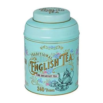 New English Teas Vintage Victorian Tea Tin with 240 English Breakfast Teabags for Tea Lovers, Forget Me Not Florals & Classic Tea Set Design